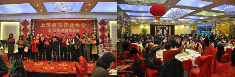 晚些的迎春团拜晚会上,各典当企业代表齐聚一堂。在吴贤达会长开场的新春祝酒词后,各代表高举酒杯,共同高唱《我的祖国》,祝上海典当行业在新的一年里龙马精神更进一步。